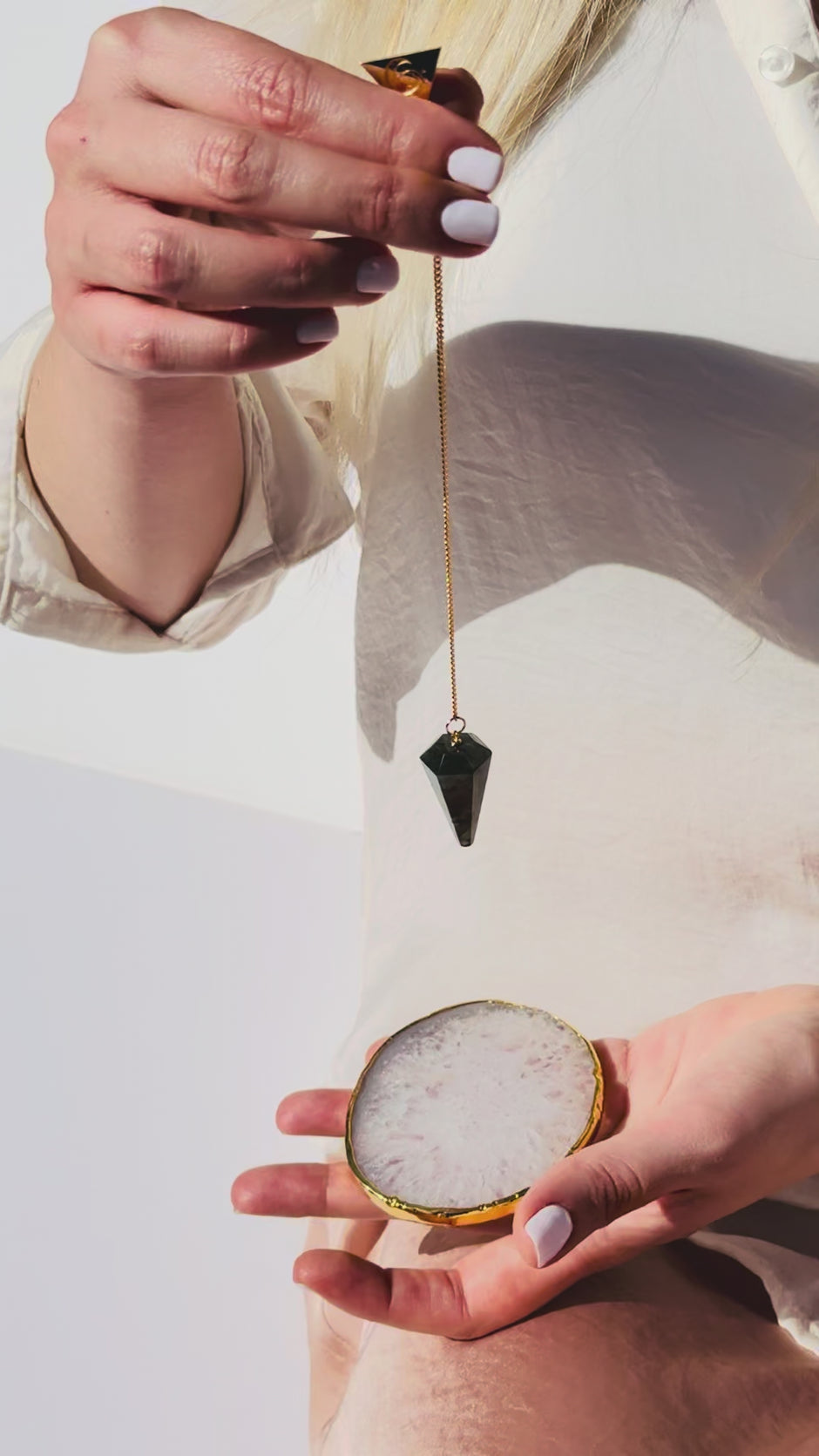 Our Luxury Pendulum Kits are perfect for those seeking quality and sophistication in their spiritual tools. Each Pendulum is crafted with a sterling silver chain, available with rose gold and 24 carat gold plating, and is paired with a matching Agate Charging Plate